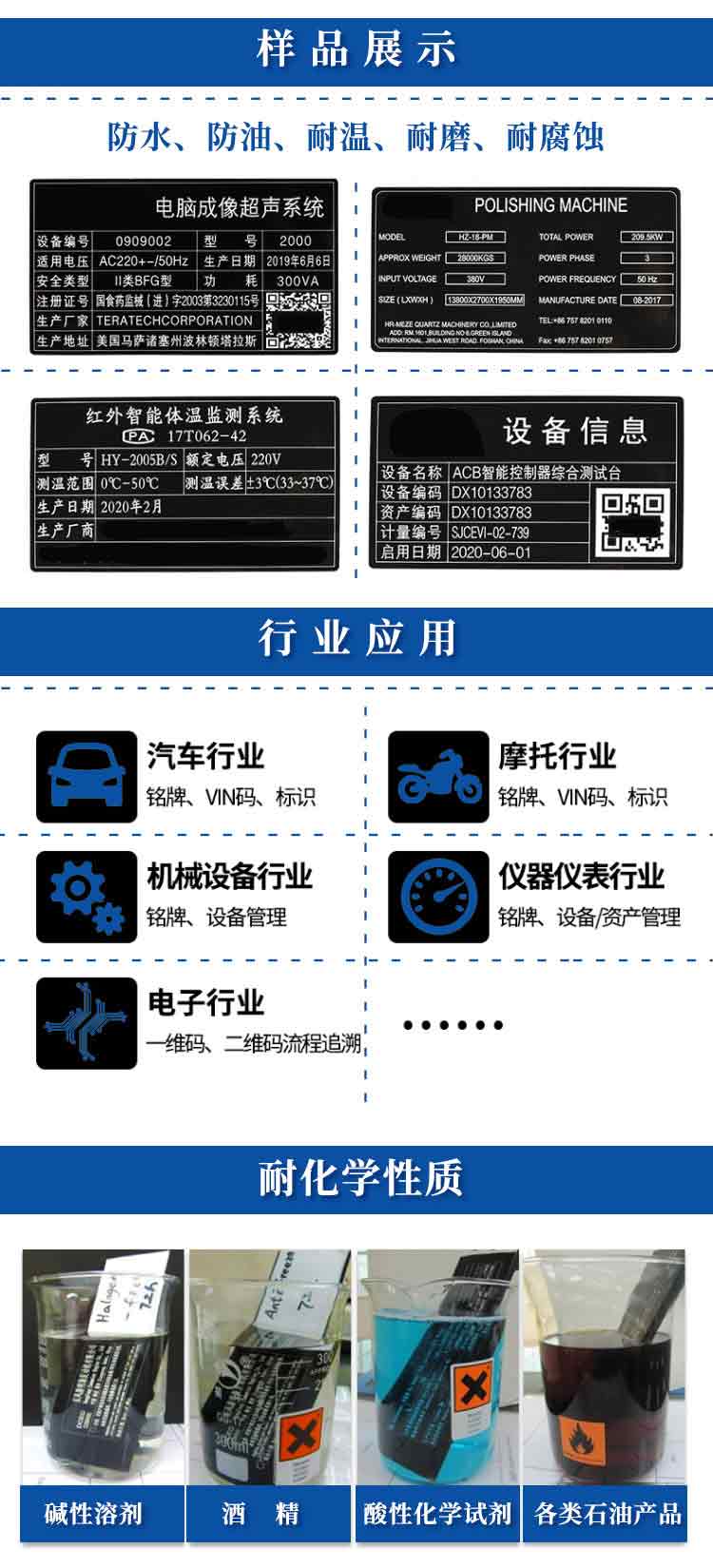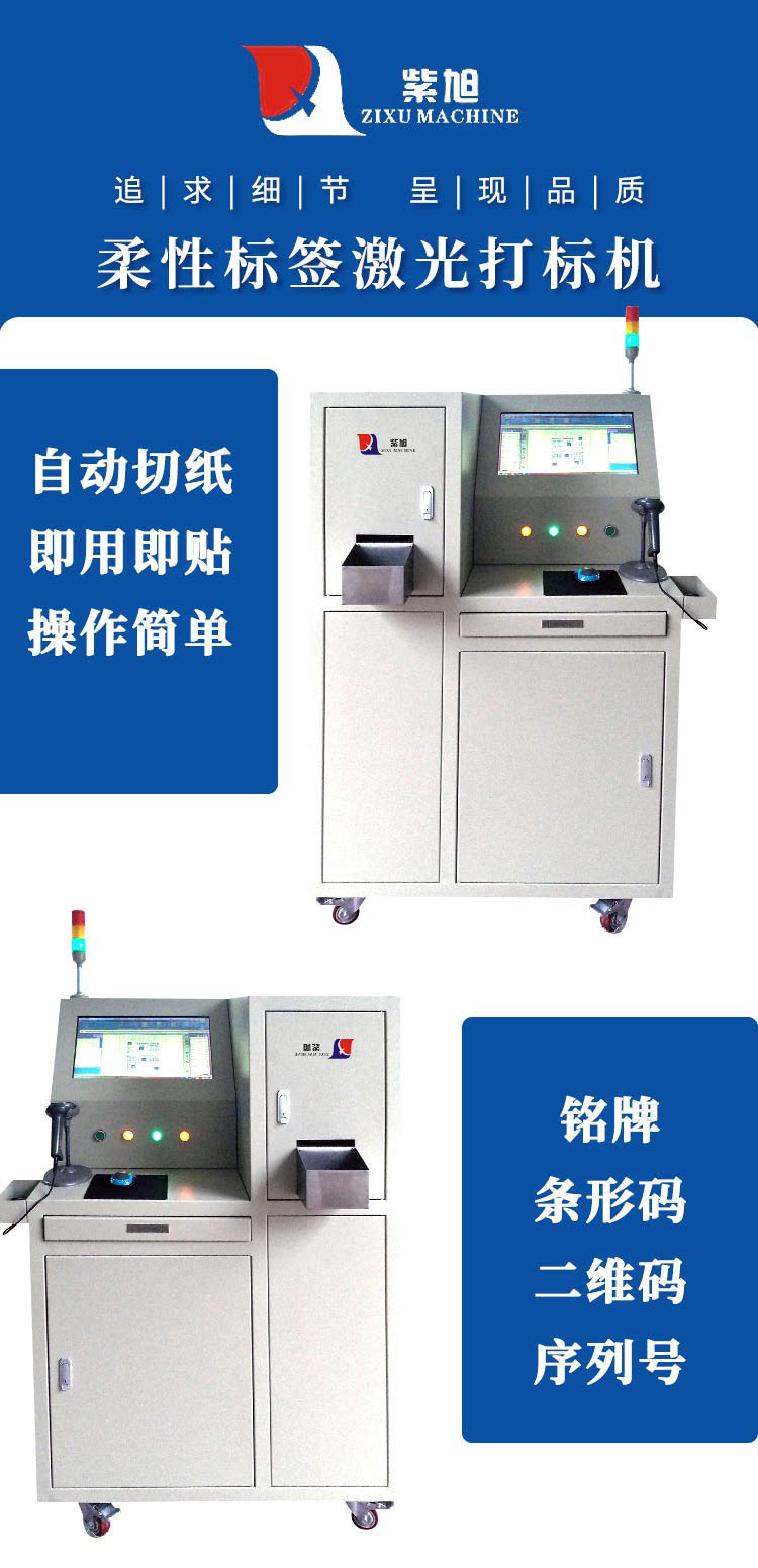 柔性紙標牌又稱為“激光標簽”、“防篡改產(chǎn)品標簽”,可替代原來使用鋁標牌的地方,激光蝕刻時,將首層亞克力涂層刻蝕掉,第二層的顏色便顯現(xiàn)出來,圖案由此產(chǎn)生。紫旭旗下子公司初刻研制生產(chǎn)的柔性標簽專用激光打標機是根據(jù)柔性紙標牌的特點,采用國內(nèi)外大品牌光纖激光器,結(jié)合先進的激光技術(shù)、精密機械技術(shù)、電子控制技術(shù)和計算機技術(shù)等研發(fā)生產(chǎn)而成,并已成功地實現(xiàn)行業(yè)應用。